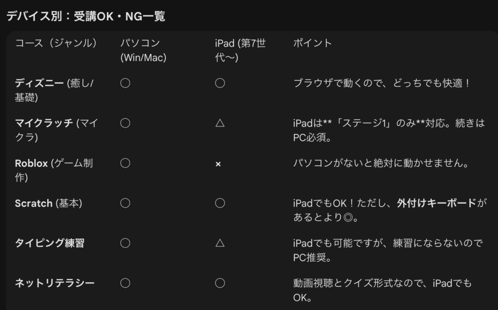 (マイクラのみ無料体験ミッション1だけはiPadでも受講可能)
