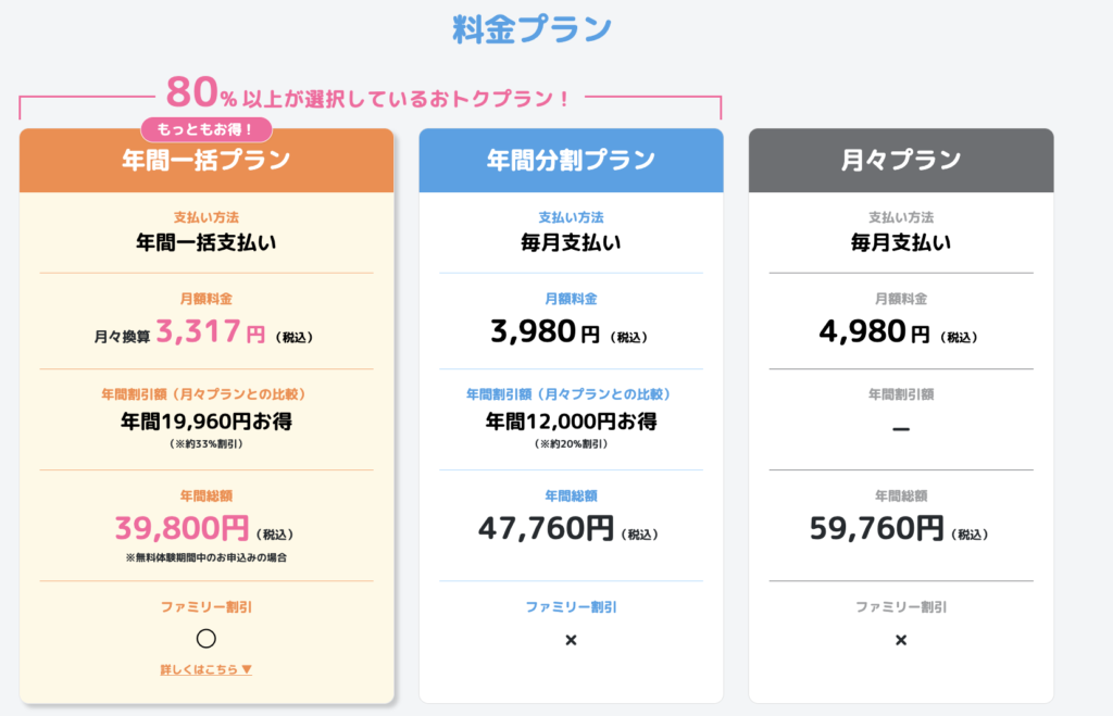 無料体験をやってみて1年続けられるほどやる気が見えた子には、年間一括がおすすめです。