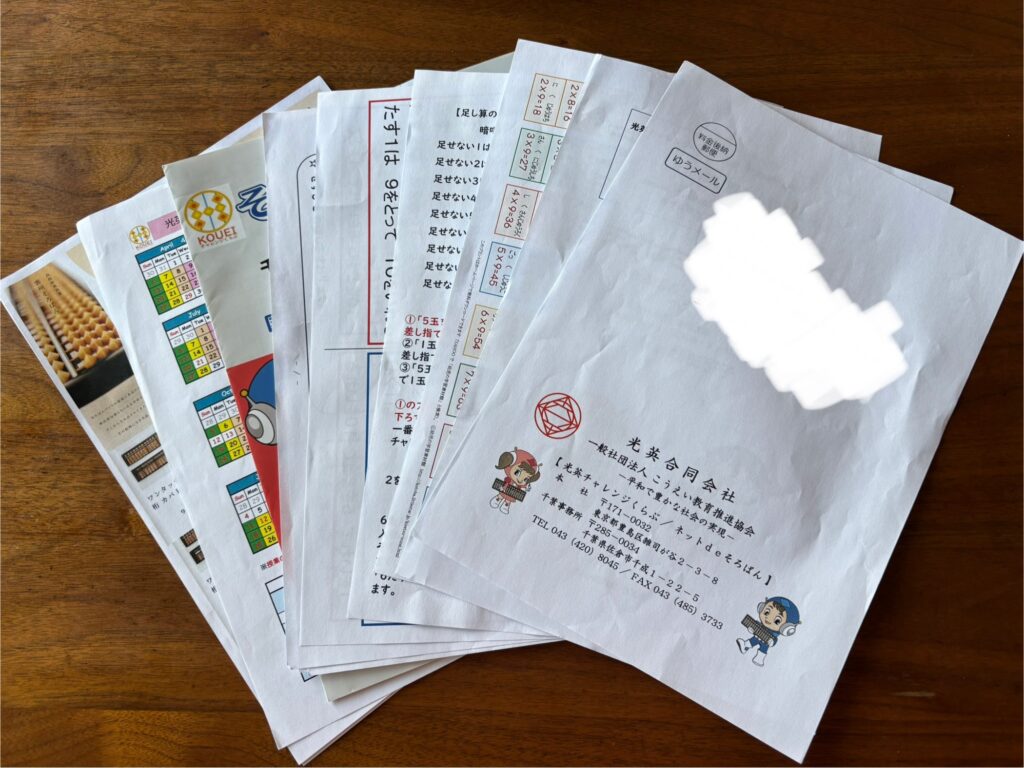 体験用の紙教材が郵送で届く